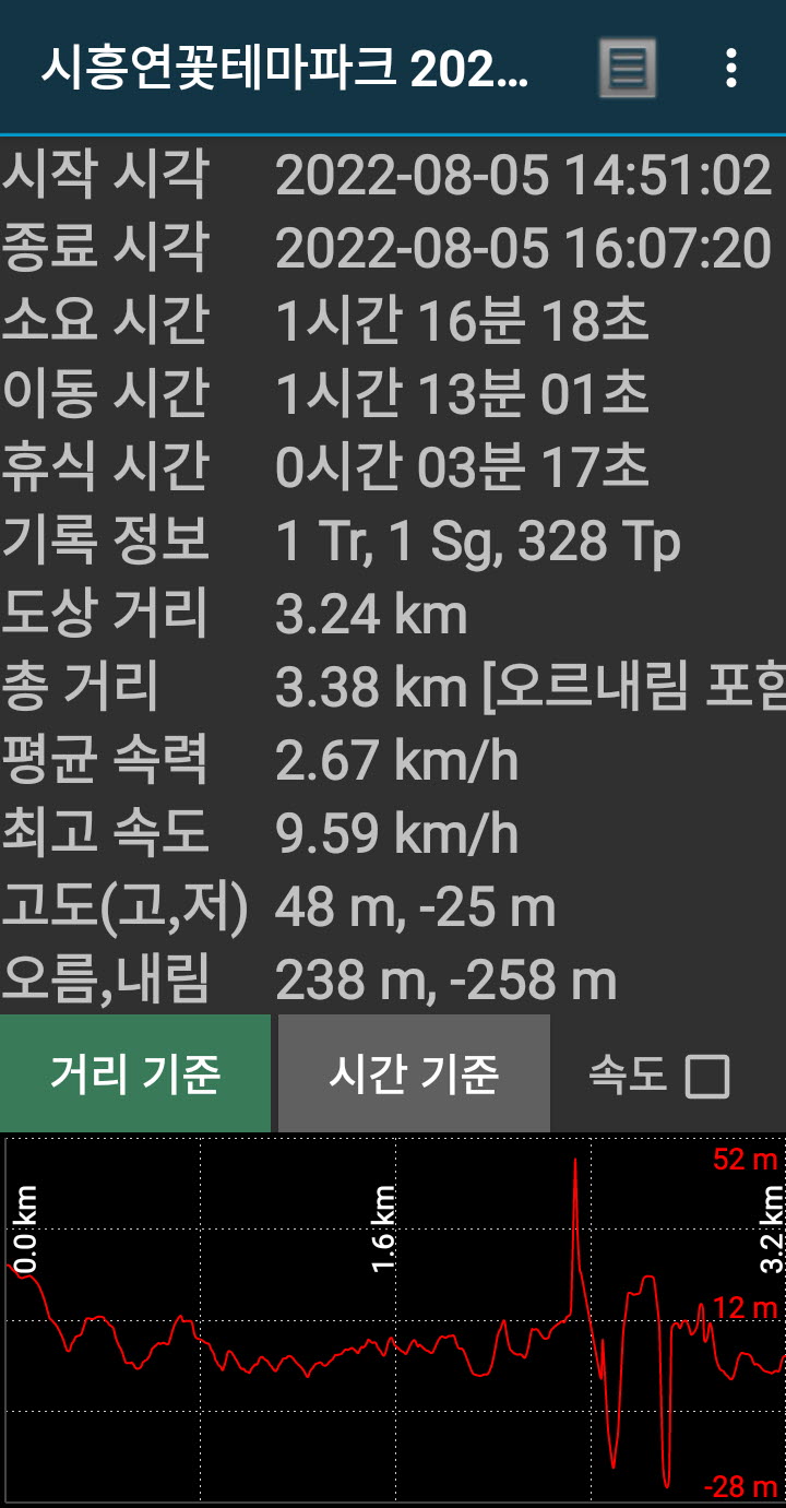 <산행시간 : 휴식포함 2시간 8분 소요> 휴식 3분